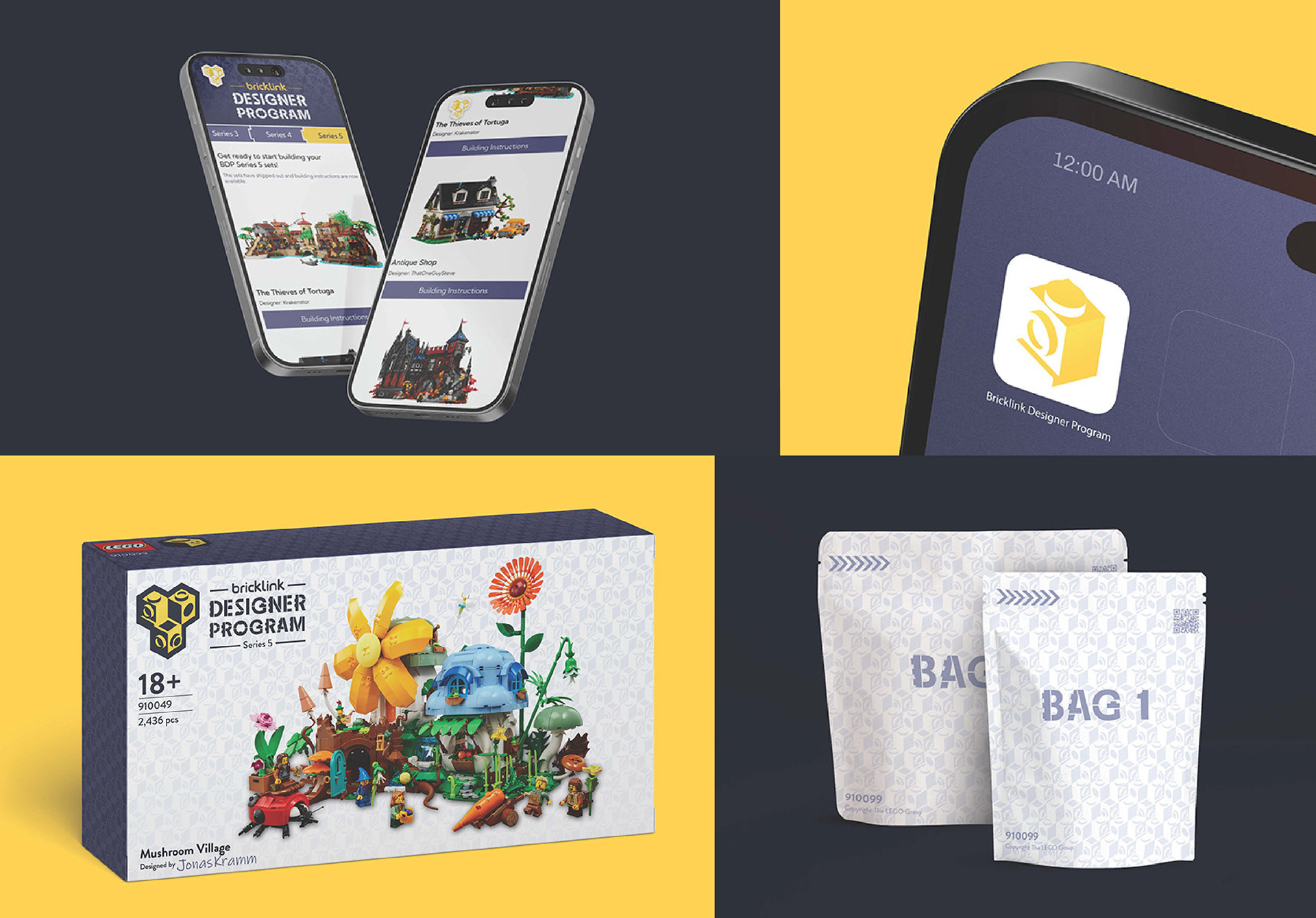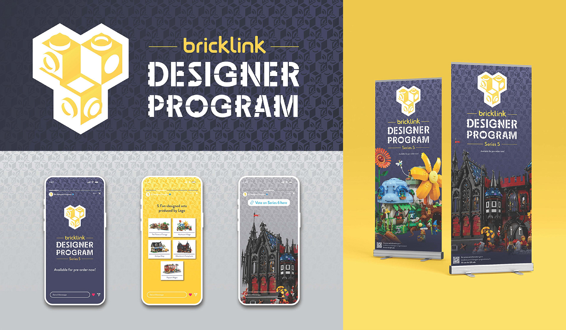 For this campaign I changed the Bricklink Designer Program to closer match the visual identity of the Bricklink website, and other community-driven Lego themes like Ideas. The logo is based off the impossible cube to exemplify the complex nature of the Designer Program sets.