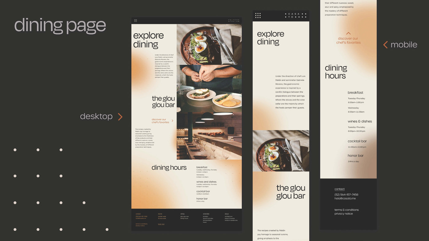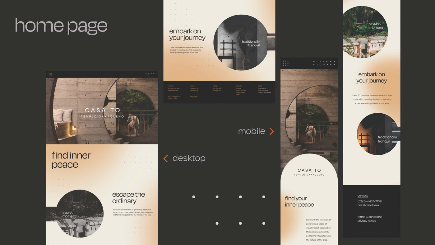 The goal of this assignment was to redesign an actual hotel’s website to align better with their identity. My partners and I took inspiration from Casa TO’s unique architecture and used it as a base for the visual system. The final product gives viewers’ the experience of walking through the space as they browse the site.